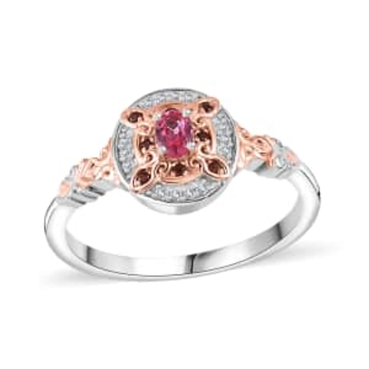 Premium Mahenge Spinel, Brown and White Zircon Timeless Elegance Ring in 18K Vermeil Rose Gold Over Sterling Silver (Size 9.0) 0.30 ctw