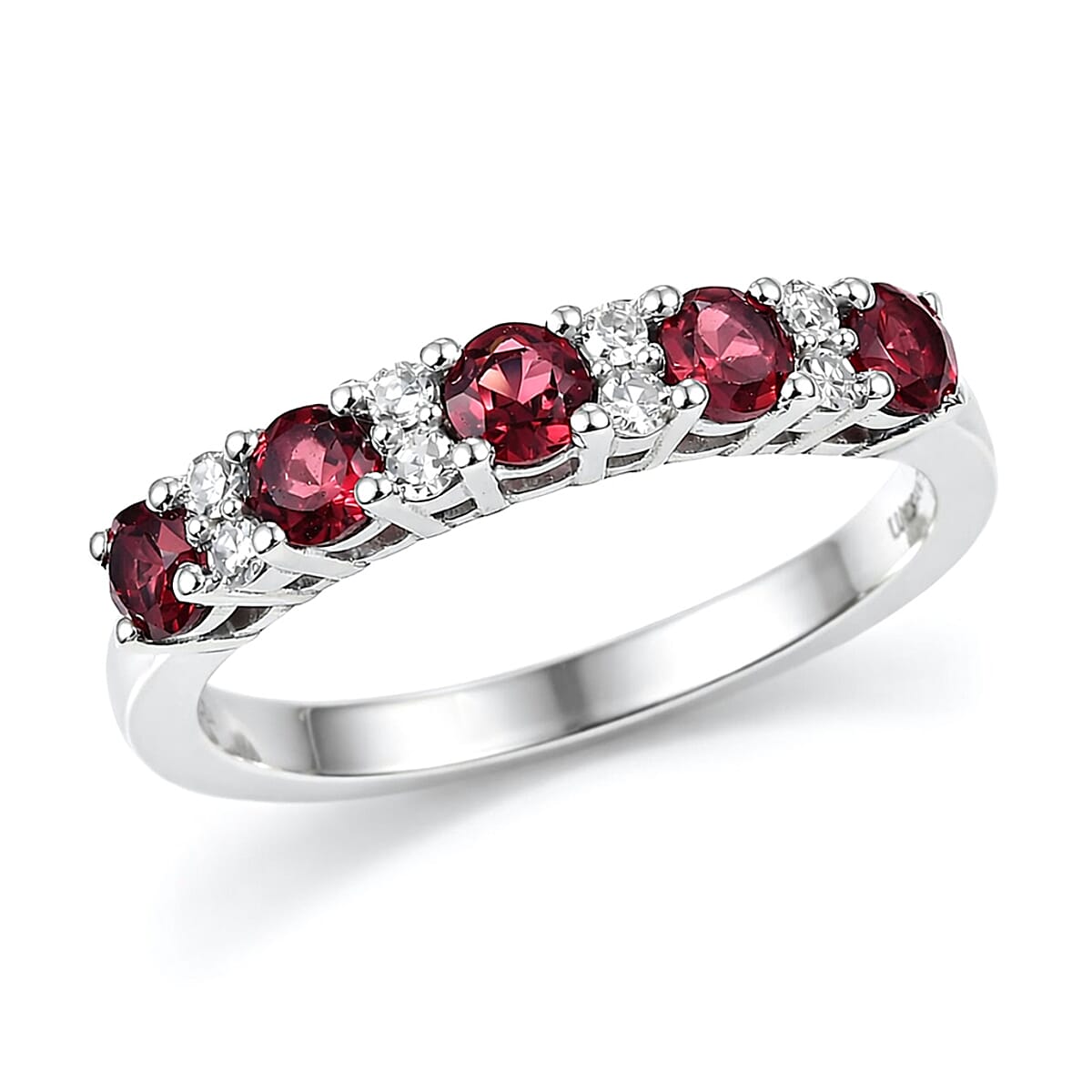 Premium Malawi Magenta Garnet and Luxuriant Lab Grown Diamond G-H SI 0.90 ctw Moonlit Spark Ring in Rhodium Over Sterling Silver (Size 9.0)