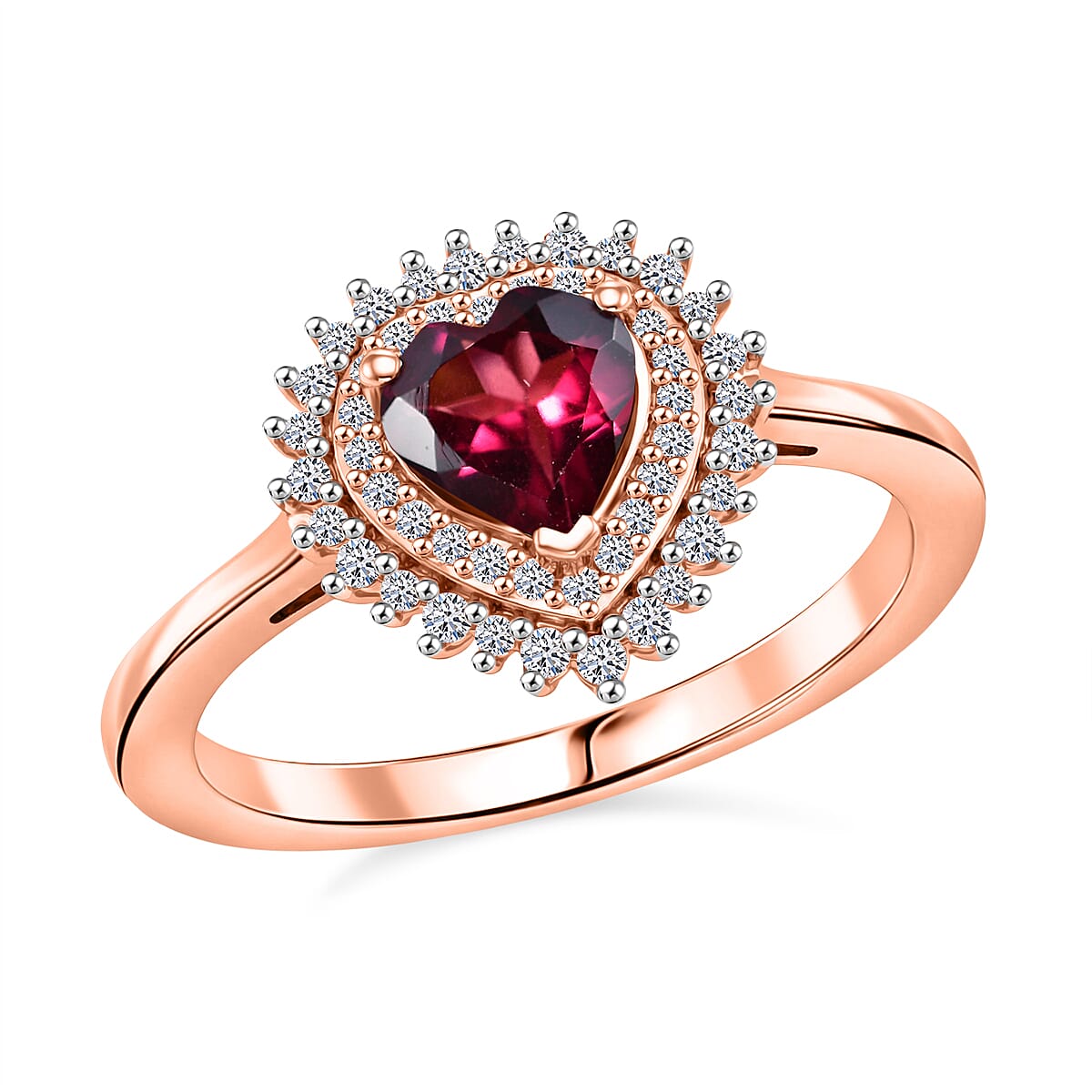 Premium Malawi Magenta Garnet and Luxuriant Lab Grown Diamond G-H SI 1.10 ctw Ring in 18K Vermeil Rose Gold Over Sterling Silver (Size 10.0)
