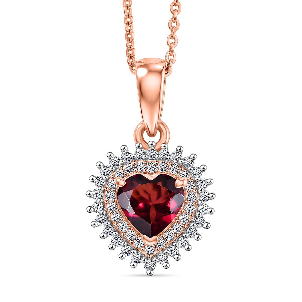 Premium Malawi Magenta Garnet, Luxuriant Lab Grown Diamond G-H SI 1.00 ctw Heart Pendant Necklace in 18K Vermeil Rose Gold Over Sterling Silver 20 Inches