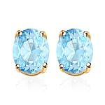 Premium Mangoro Aquamarine 2.60 ctw Solitaire Stud Earrings in 14K Yellow Gold (Del. in 10-12 Days)