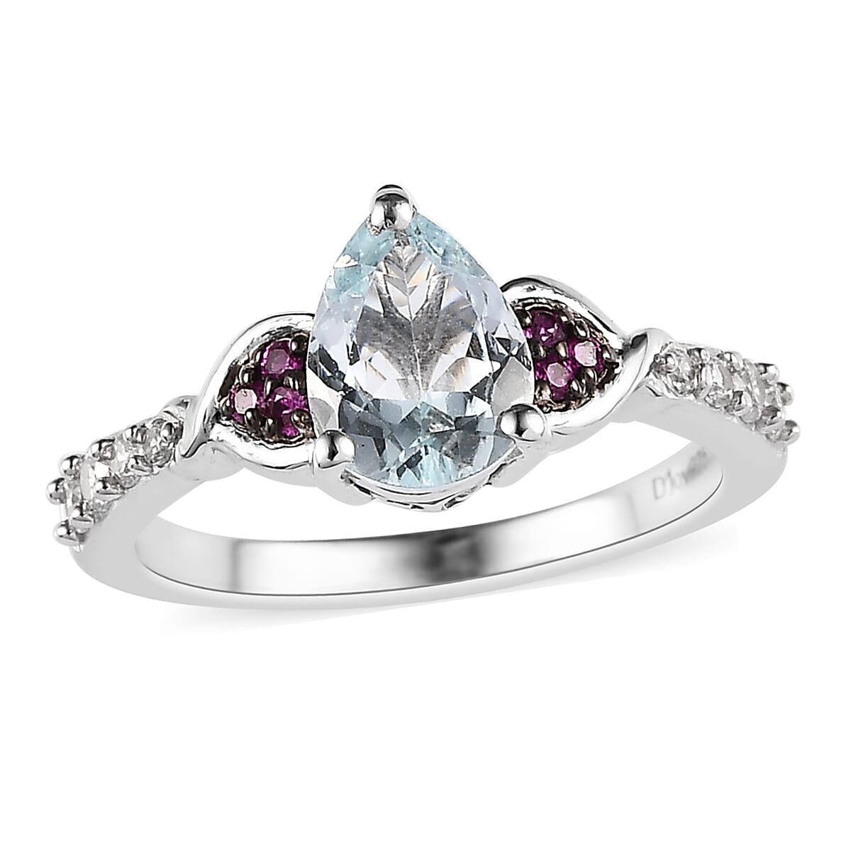 Premium Mangoro Aquamarine and Multi Gemstone Ring in Platinum Over Sterling Silver (Size 9.0) 1.15 ctw