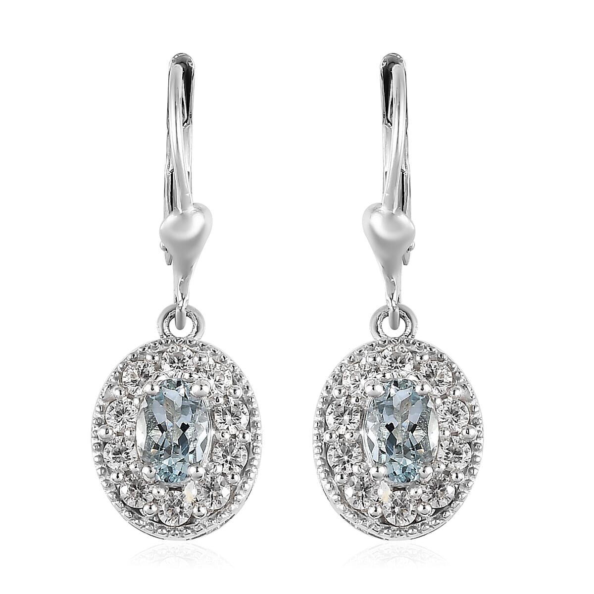 Premium Mangoro Aquamarine and White Zircon Halo Earrings in Platinum Over Sterling Silver 1.85 ctw