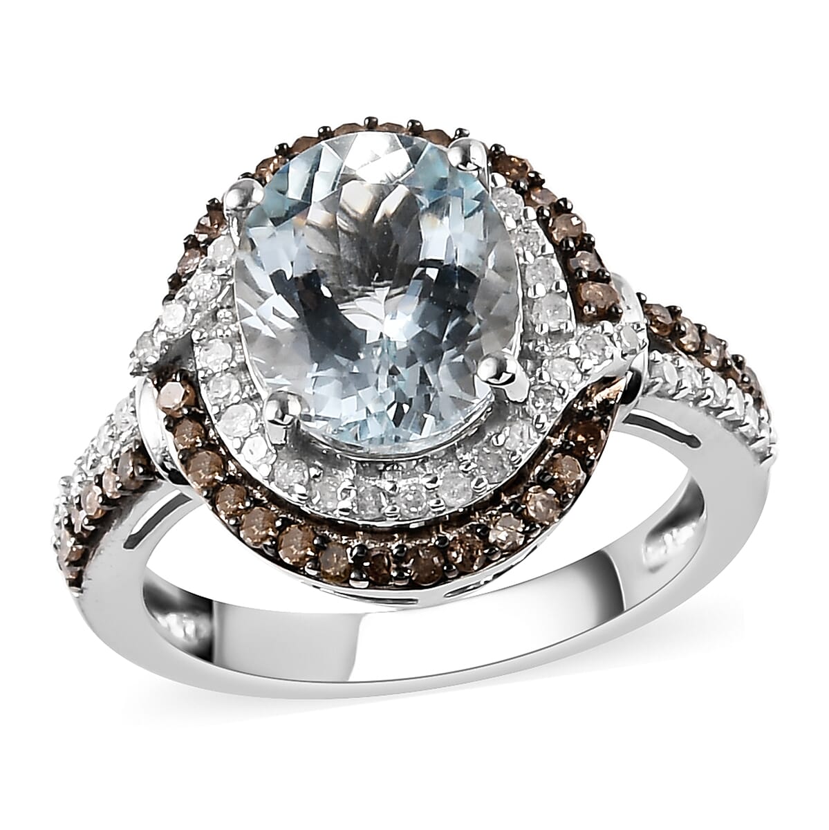 Premium Mangoro Aquamarine, Natural Champagne and Diamond Ring in Platinum Over Sterling Silver (Size 6.0) 2.75 ctw