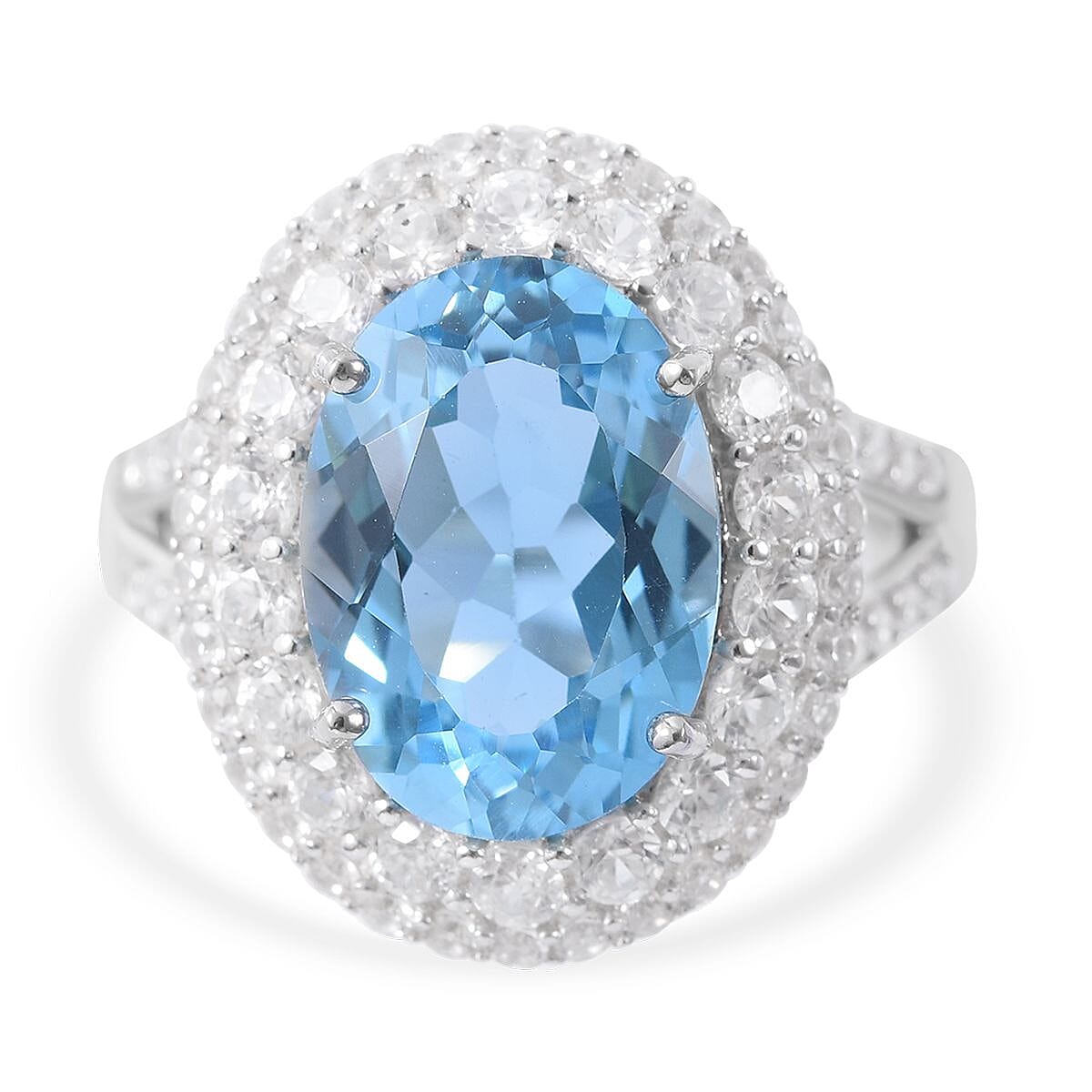 Premium Marambaia Topaz and White Zircon Halo Ring in Platinum Over Sterling Silver (Size 6.0) 10.65 ctw