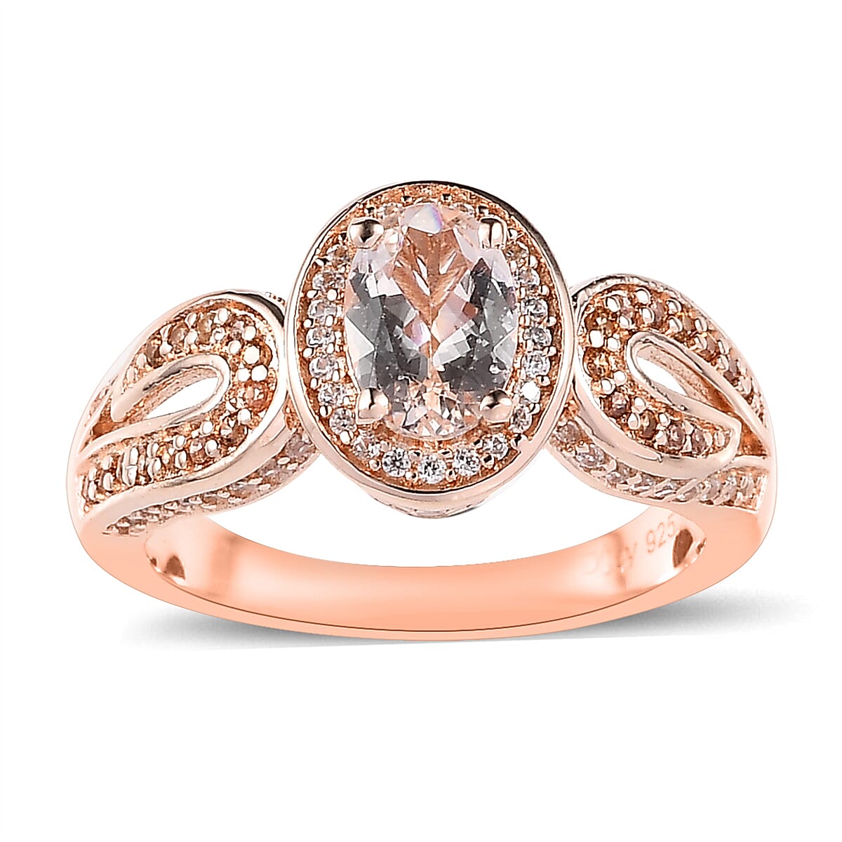 Premium Marropino Morganite and Coffee and White Zircon Ring in Vermeil Rose Gold Over Sterling Silver (Size 8.0) 1.65 ctw