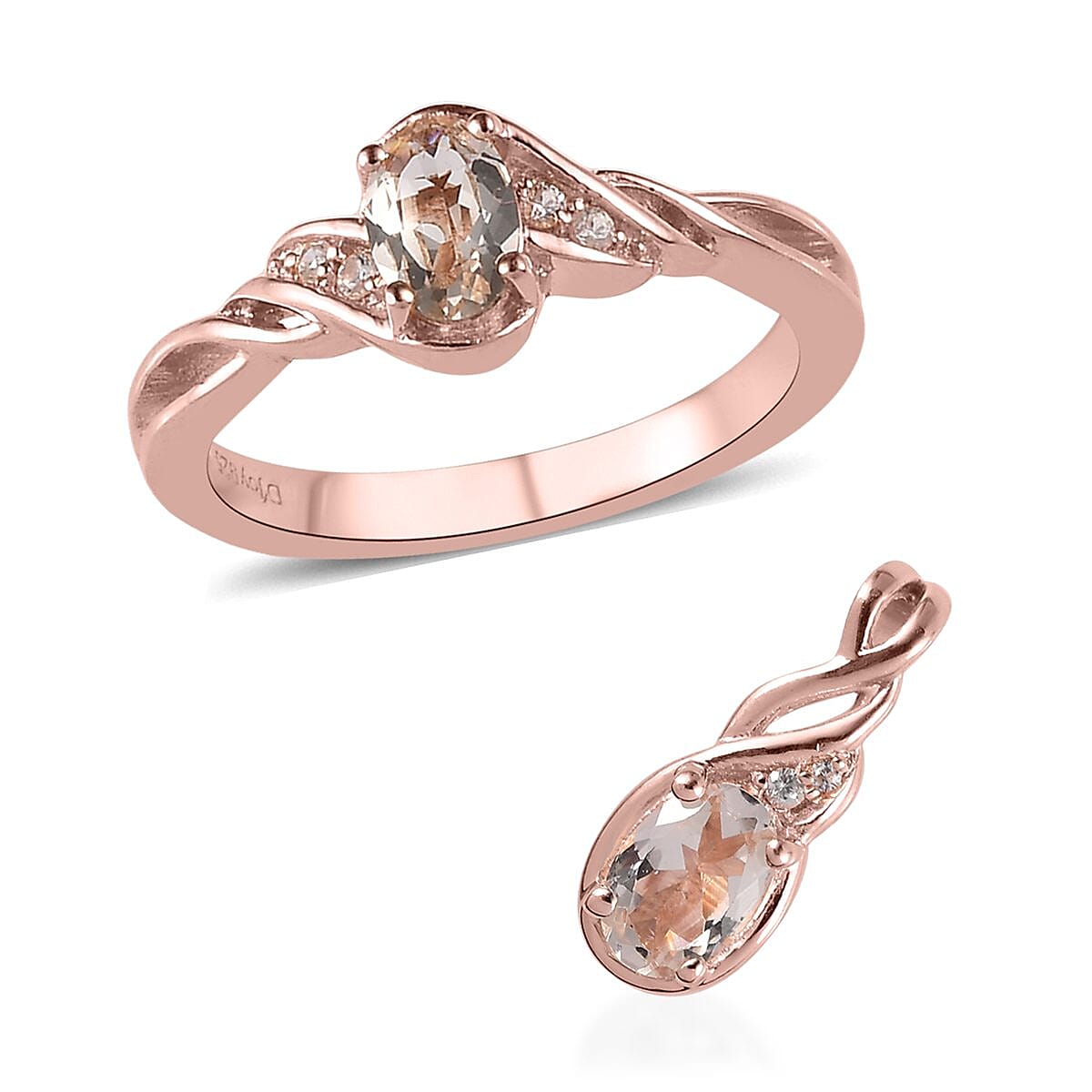 Premium Marropino Morganite and Natual White Zircon Ring (Size 5.0) and Pendant in Vermeil Rose Gold Over Sterling Silver 0.85 ctw