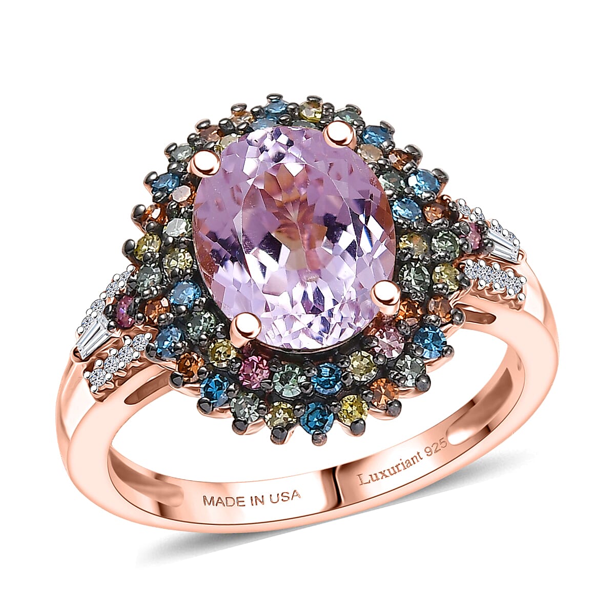 Premium Martha Rocha Kunzite and Luxuriant Lab Grown Multi Color Diamond SI 4.20 ctw Floral Fiesta Ring in 18K Vermeil RG Over Sterling Silver (Size 8.0)
