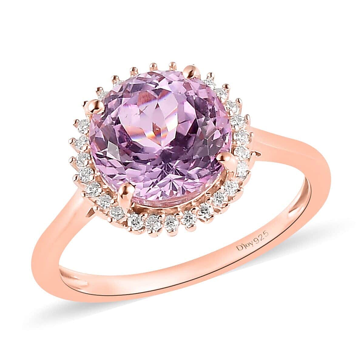 Premium Martha Rocha Kunzite and Moissanite Halo Ring in Vermeil Rose Gold Over Sterling Silver (Size 7.0) 3.75 ctw