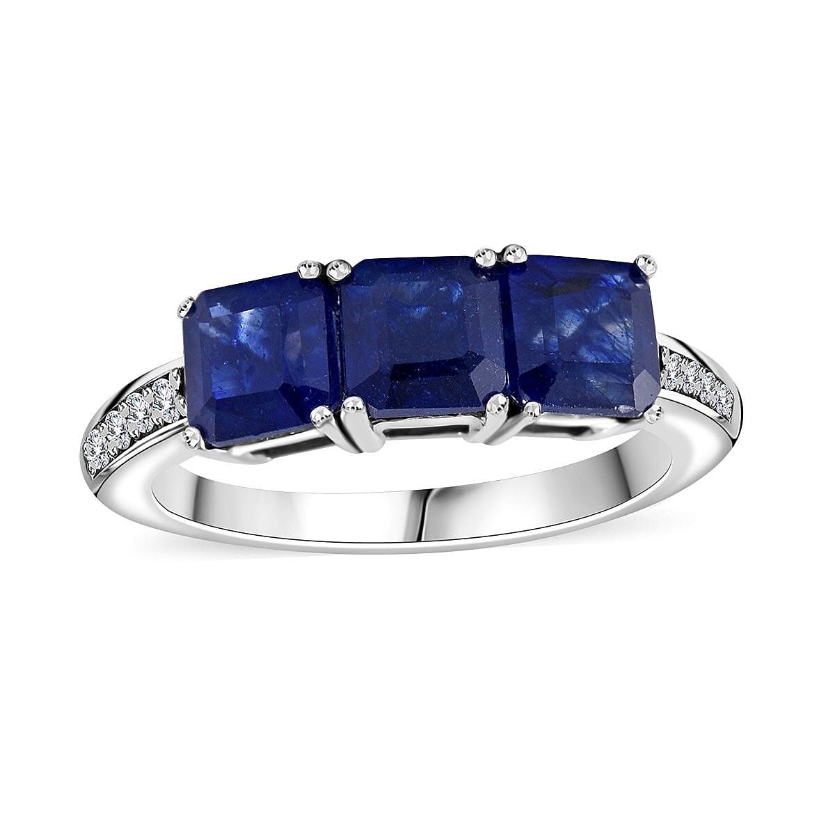 Premium Masoala Sapphire (D) and White Zircon Trinity Ring in Platinum Over Sterling Silver (Size 5.0) 3.15 ctw