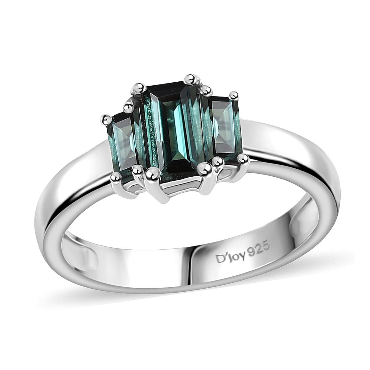 Premium Monte Belo Indicolite 3 Stone Ring in Rhodium Over Sterling Silver (Size 9.0) 1.10 ctw