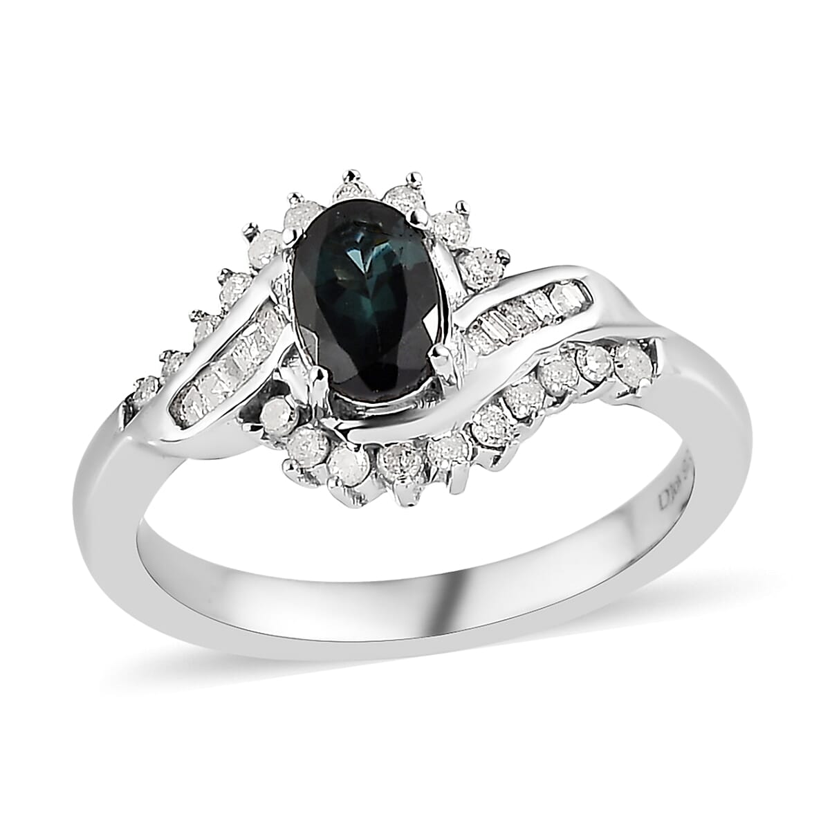 Premium Monte Belo Indicolite and Diamond Ring in Platinum Over Sterling Silver (Size 7.0) 0.75 ctw
