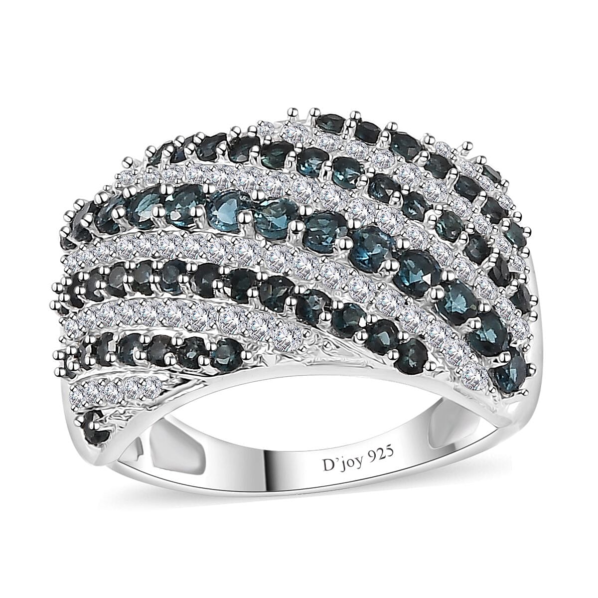 Elevate your style with this premium Monte Belo indicolite and moissanite ring. This indicolite ring features prong-set indicolite and moissanite stones arranged in slanting rows, set in rhodium over sterling silver. The combination of the rich indicolite hue and the brilliance of moissanite creates a captivating sparkle that is sure to turn heads.
