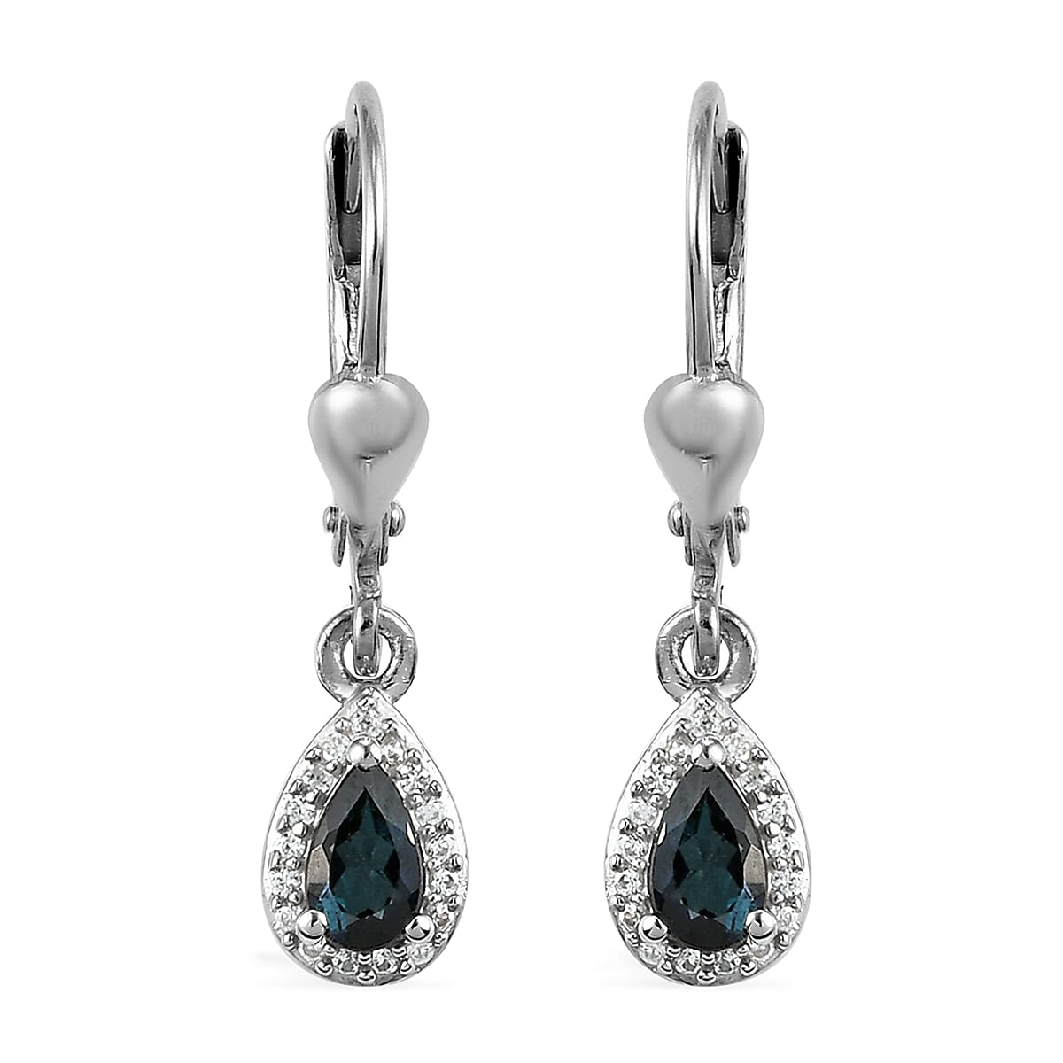 Premium Monte Belo Indicolite and Natural White Zircon Drop Earrings in Platinum Over Sterling Silver 0.60 ctw