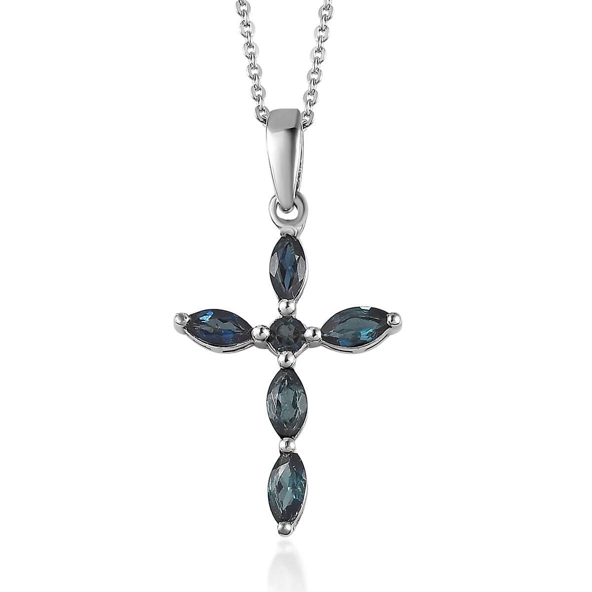 Embrace the intersection of style and faith with the exquisite premium Monte Belo indicolite pendant. Impeccably crafted with meticulous attention to detail, this platinum over sterling silver masterpiece spans 20 inches, seamlessly blending timeless design with contemporary allure. Adorned with a mesmerizing marquise indicolite gem on the cross and round indicolite gems at the intersection, it creates a captivating interplay of light and color that's simply enchanting.