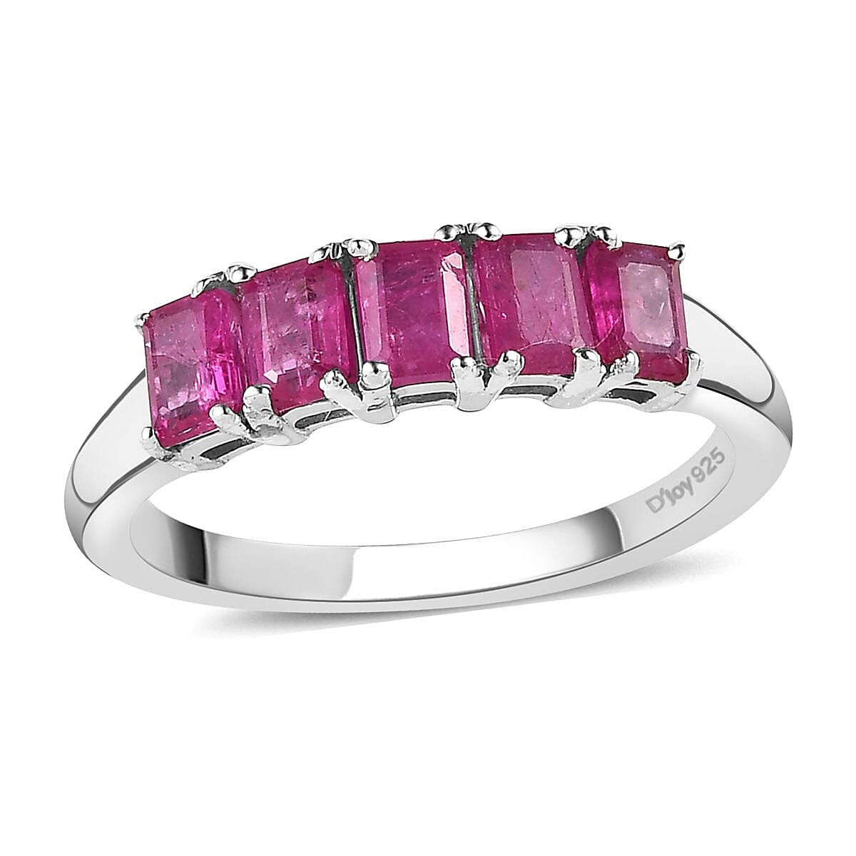 Premium Montepuez Ruby 5 Stone Ring in Platinum Over Sterling Silver (Size 10) 1.25 ctw