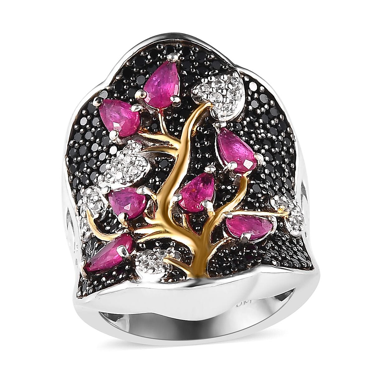 Premium Montepuez Ruby and Multi Gemstone Ring in Vermeil YG and Platinum Over Sterling Silver (Size 6.0) 4.10 ctw