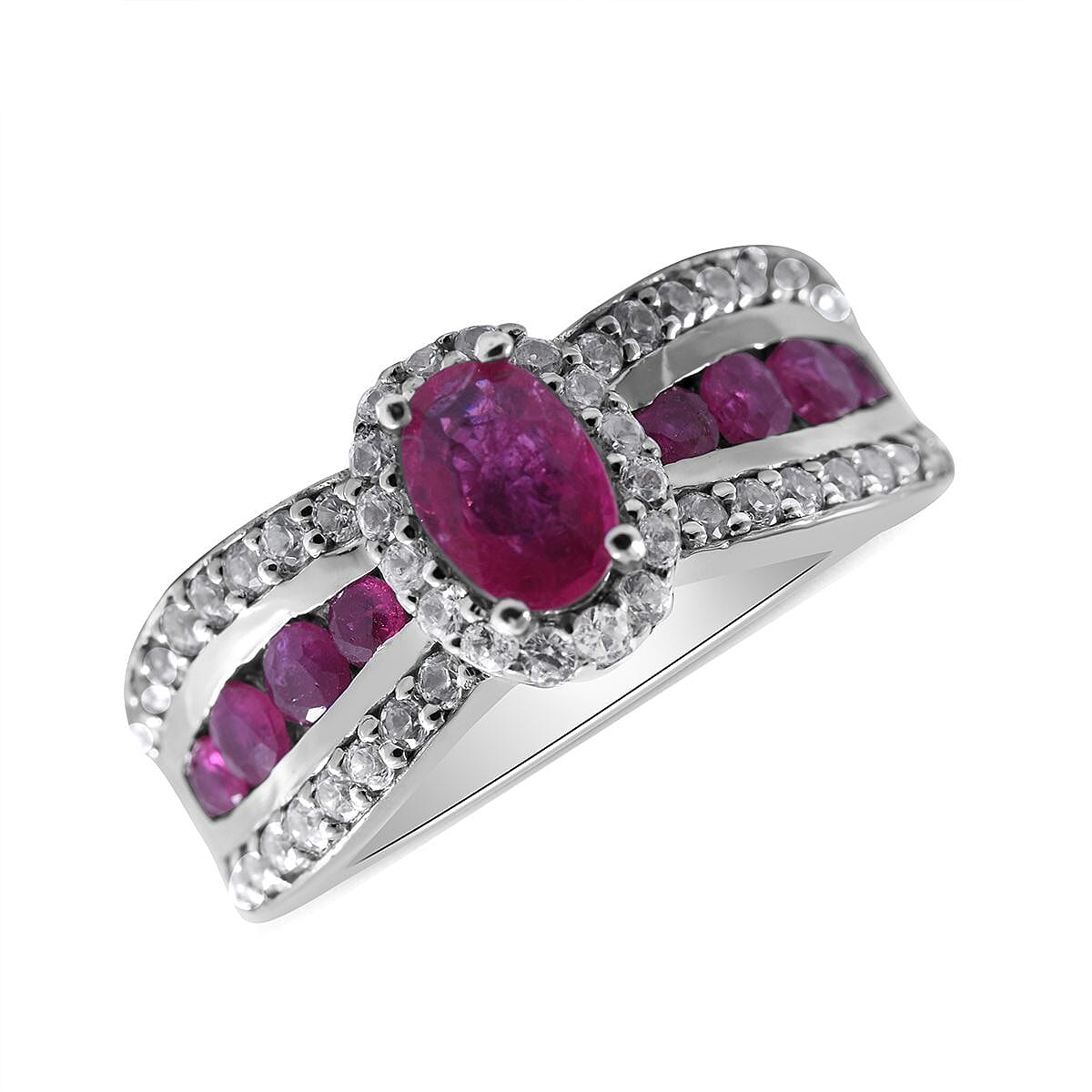 Premium Montepuez Ruby and Natural White Zircon Ring in Platinum Over Sterling Silver 2.25 ctw