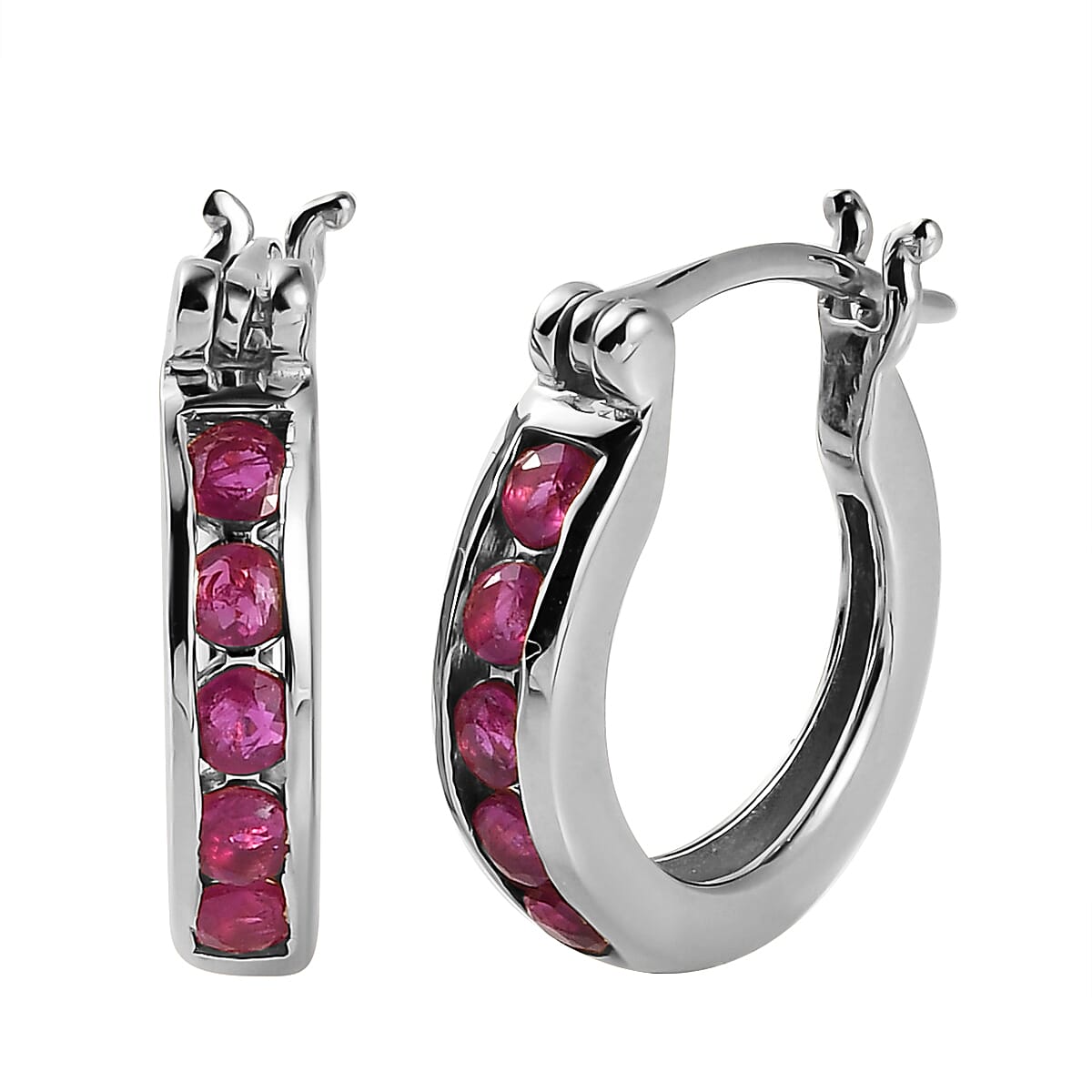 Premium Montepuez Ruby Hoop Earrings in Platinum Over Sterling Silver 0.85 ctw