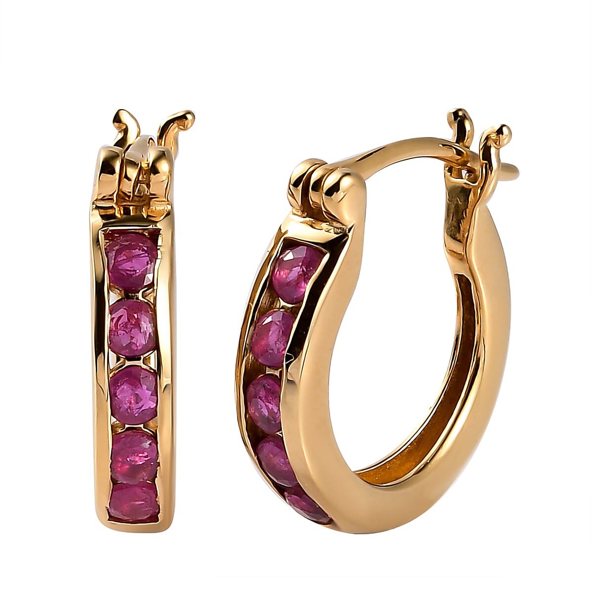 Premium Montepuez Ruby Hoop Earrings in Vermeil Yellow Gold Over Sterling Silver 0.85 ctw