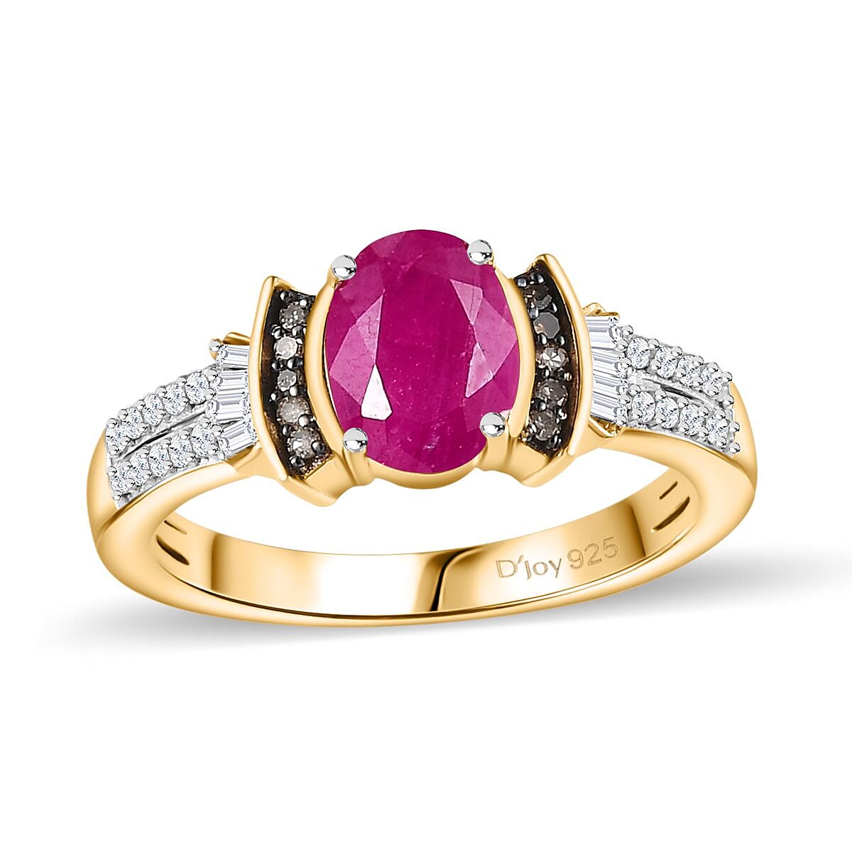 Premium Montepuez Ruby, Natural Champagne and White Diamond Ring in 18K Vermeil Yellow Gold Over Sterling Silver (Size 8.0) 1.80 ctw