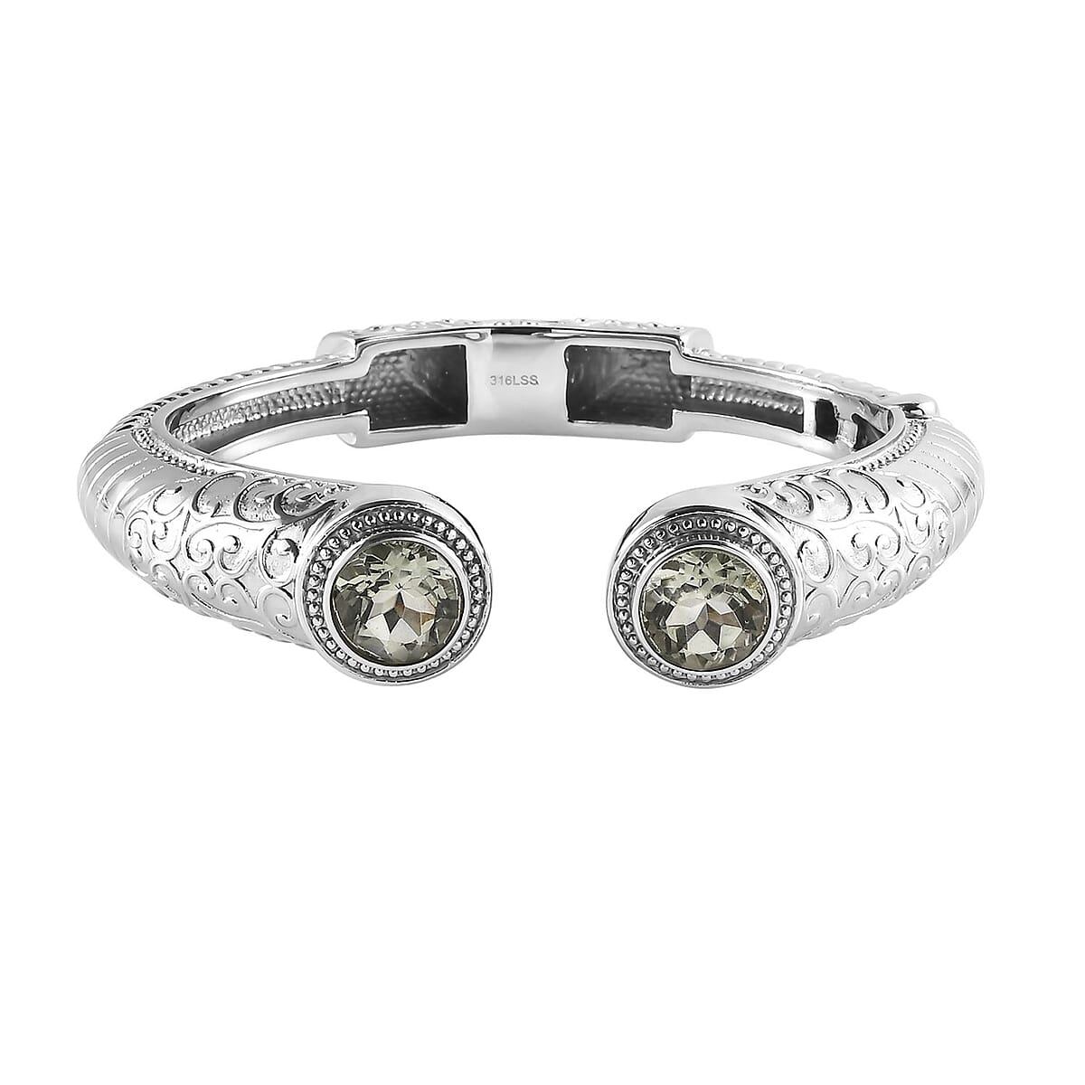 Premium Montezuma Prasiolite 7.35 ctw Bangle Bracelet in Stainless Steel (6.50 In)