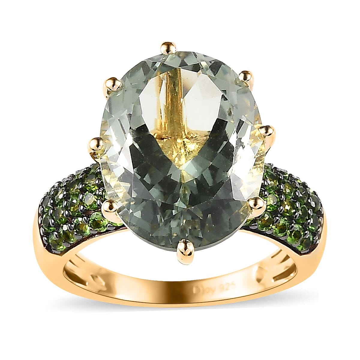 Premium Montezuma Prasiolite and Chrome Diopside Ring in Vermeil Yellow Gold Over Sterling Silver (Size 8.0) 10.00 ctw