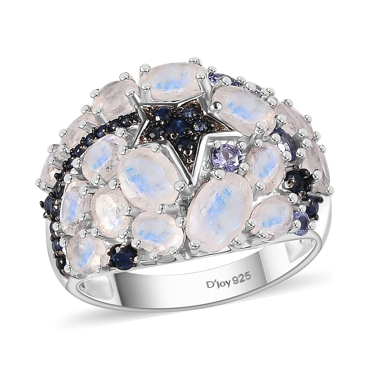 Premium Moon Glow Moonstone and Multi Gemstone 4.20 ctw Shooting Star Ring in Rhodium Over Sterling Silver (Size 8.0)