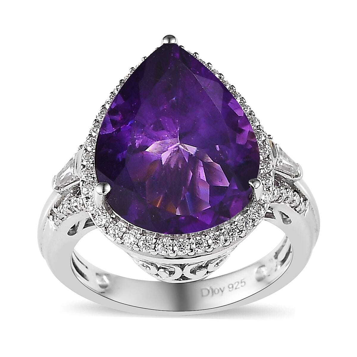 Premium Moroccan Amethyst, Moissanite Ring in Platinum Over Sterling Silver (Size 10.0) 8.65 ctw