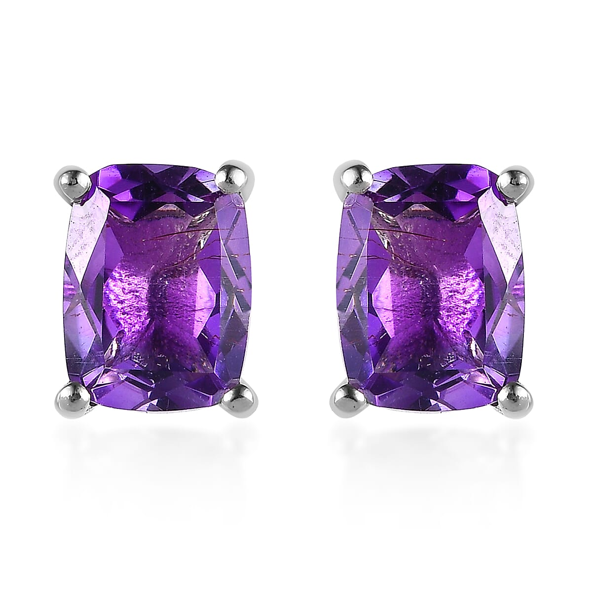 Premium Moroccan Amethyst Solitaire Stud Earrings in Platinum Over Sterling Silver 3.00 ctw