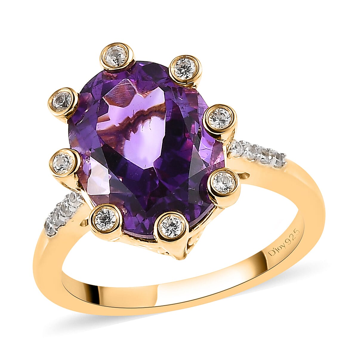 Premium Moroccan Amethyst, White Zircon Ring in Vermeil YG Over Sterling Silver (Size 10.0) 6.25 ctw