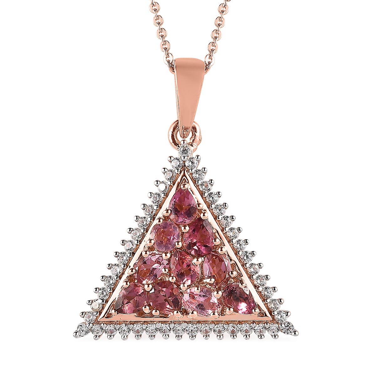 Premium Morro Redondo Pink Tourmaline and White Zircon Pendant Necklace 20 Inches in Vermeil Rose Gold Sterling Silver 2.00 ctw