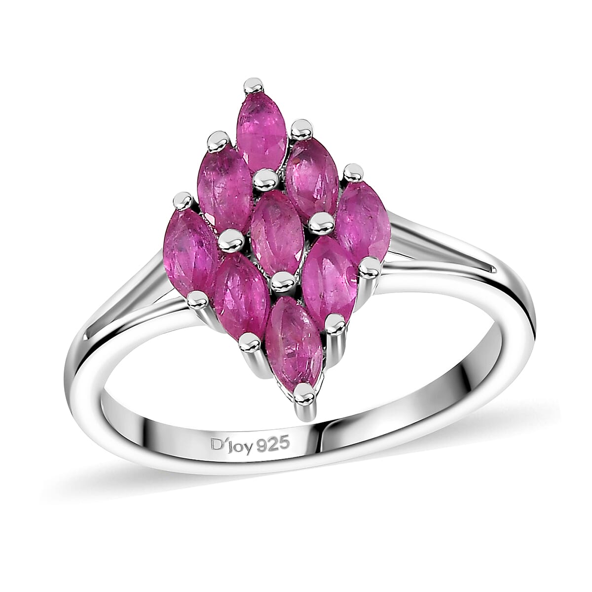 Premium Mozambique Pink Sapphire 0.85 ctw Blossom Cluster Ring in Rhodium Over Sterling Silver (Size 5.0)