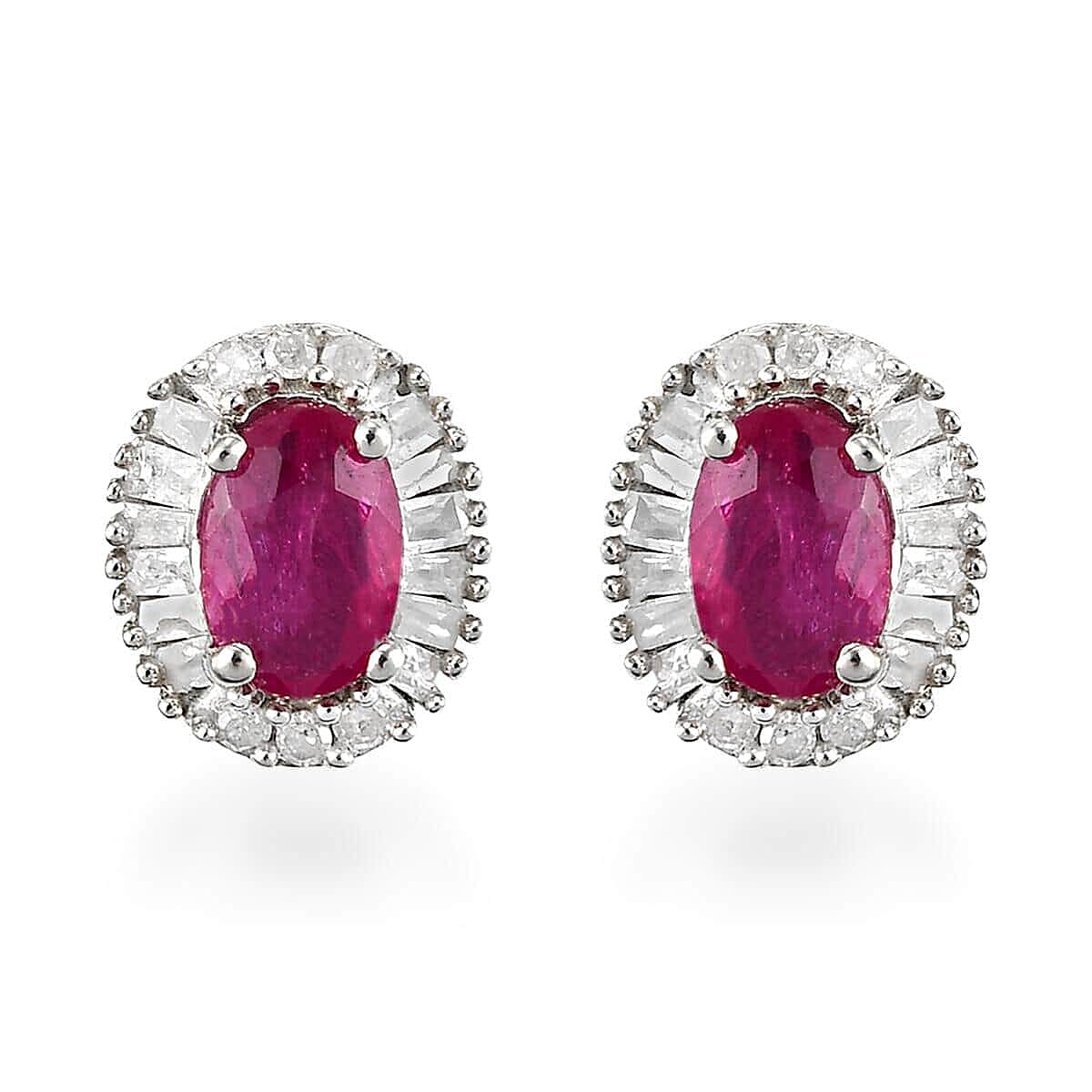 Inspired by the Ballerina style, these Mozambique ruby earrings are beautiful. The oval-shaped red-hued gem in the center is surrounded by baguettes and round-shaped diamonds giving a halo appearance. Halo earrings provide a great deal of sparkle by illuminating the center gem, thus, making them perfect for engagements and weddings. Ruby is extremely hard with 9 Mohs on the hardness scale, resistant to scratching or abrasion, thus making these earrings perfect for daily wear. Ballerina style in jewelry is always in trend βdue to each gemstone being cut and set perfectly one after the other thus making the entire piece an example of great craftsmanship. Crafted in sterling silver, these stud earrings have a disc and rubber-shaped closure on the ends that allow easy gripping.