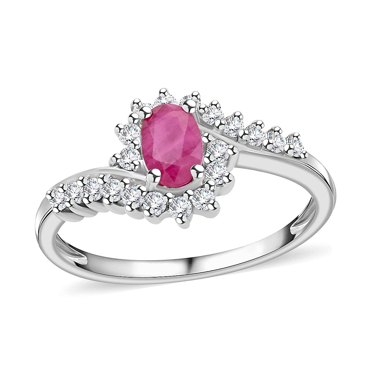 Premium Mozambique Ruby and White Zircon Sunburst Ring in Platinum Over Sterling Silver (Size 7.0) 1.10 ctw