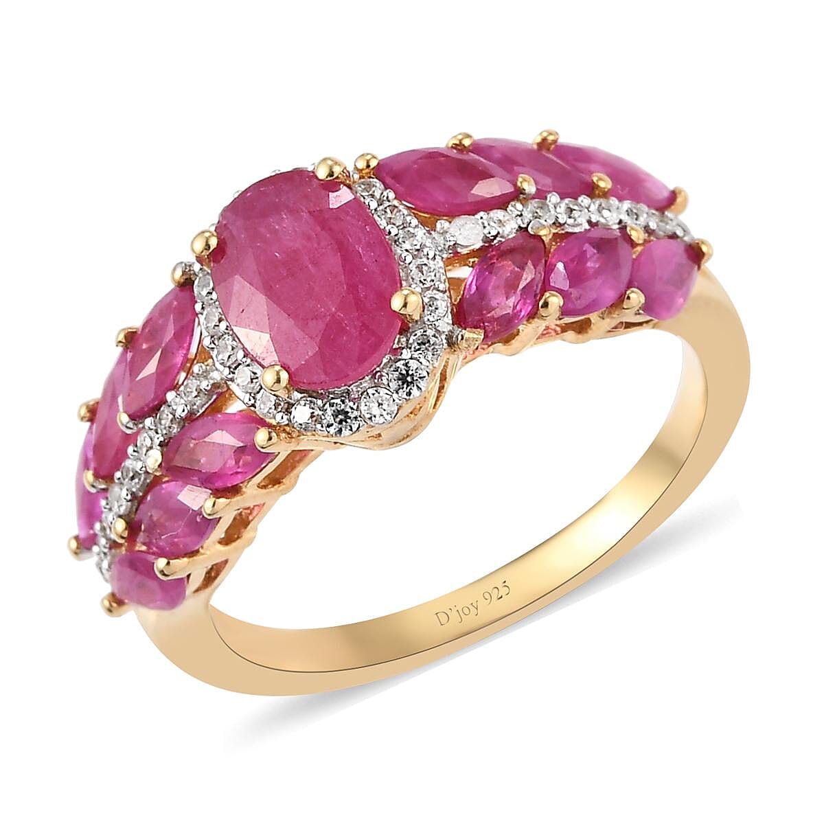 Premium Mozambique Ruby, Natural White Zircon Ring in Vermeil YG Over Sterling Silver (Size 10.0) 2.35 ctw
