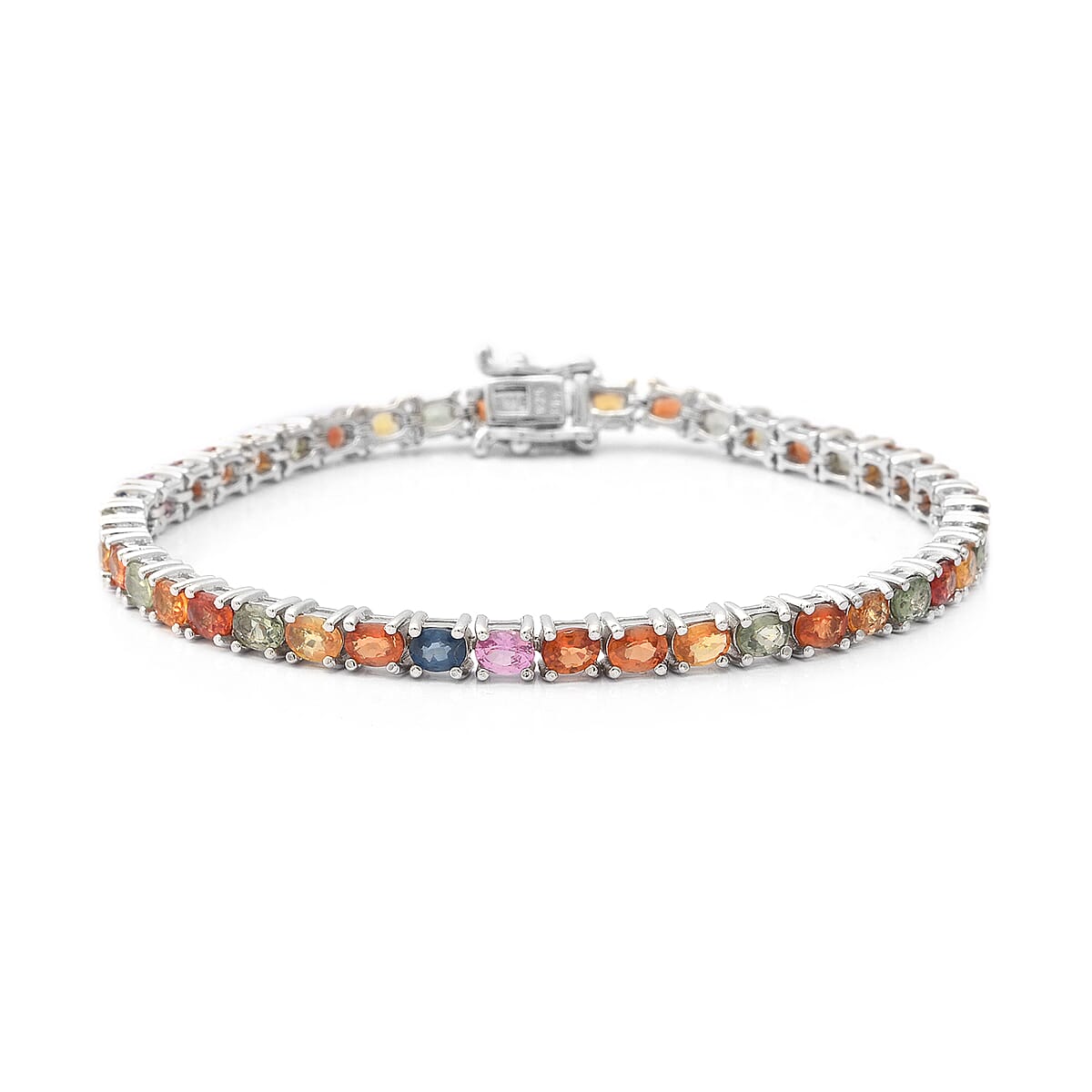Premium Multi Sapphire Tennis Bracelet in Platinum Over Sterling Silver (7.25 In) 9 Grams 10.10 ctw