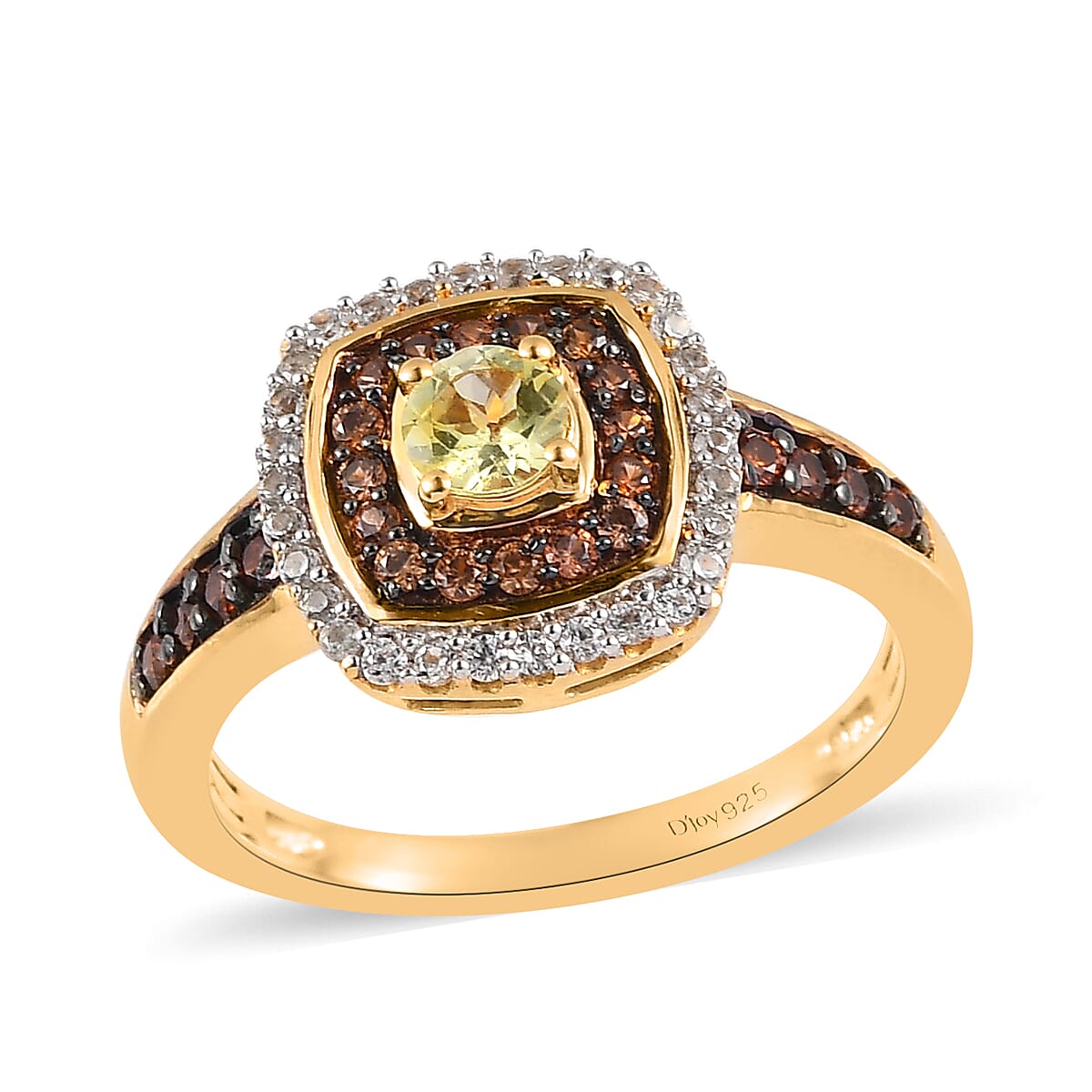 Premium Natural Chrysoberyl, Natural White Zircon, Brown Zircon Double Halo Ring in Vermeil Yellow Gold Over Sterling Silver 1.15 ctw