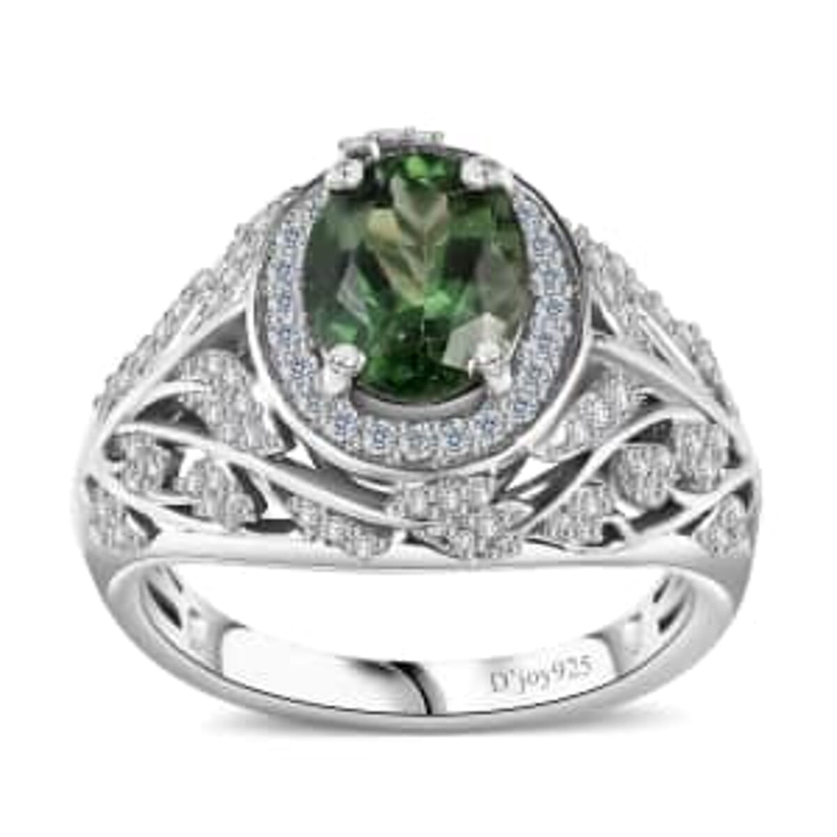 This elegantly crafted premium natural green apatite and white zircon ring is set in silver. Inspired by leafy vines and nature, this piece is designed to represent growth and connection, melding intricate beauty with the practical benefits of durable and hypoallergenic metal.