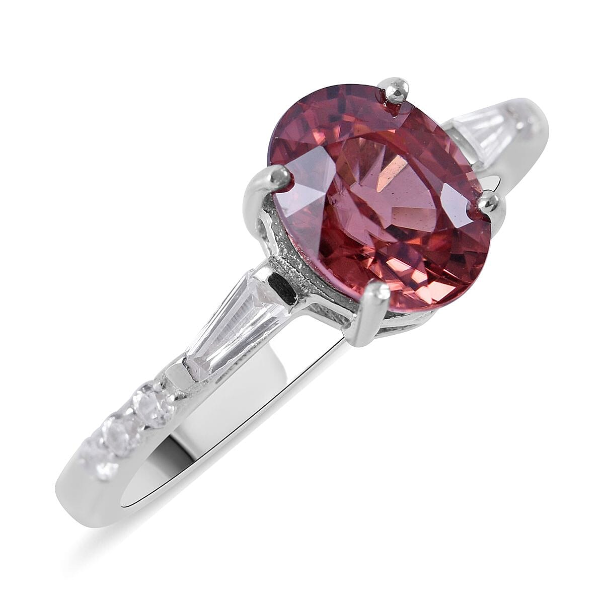 Premium Natural Pink and White Zircon Ring in Platinum Over Sterling Silver (Size 10.0) 2.15 ctw
