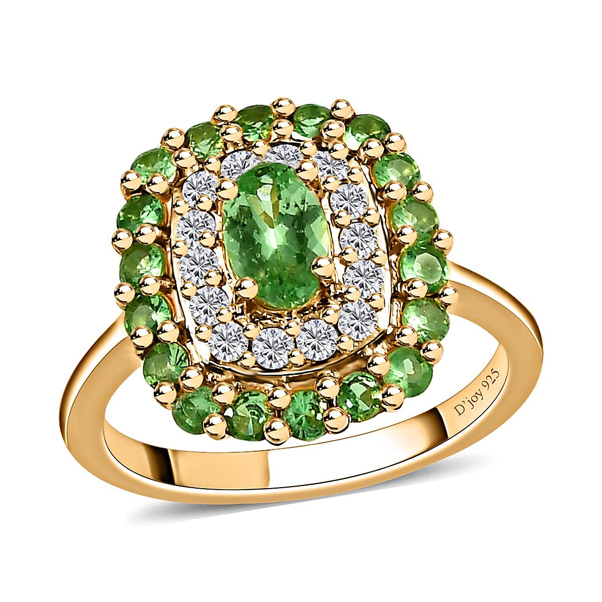 Premium Natural Tsavorite Garnet and Moissanite Double Halo Ring in Vermeil Yellow Gold Over Sterling Silver 1.40 ctw