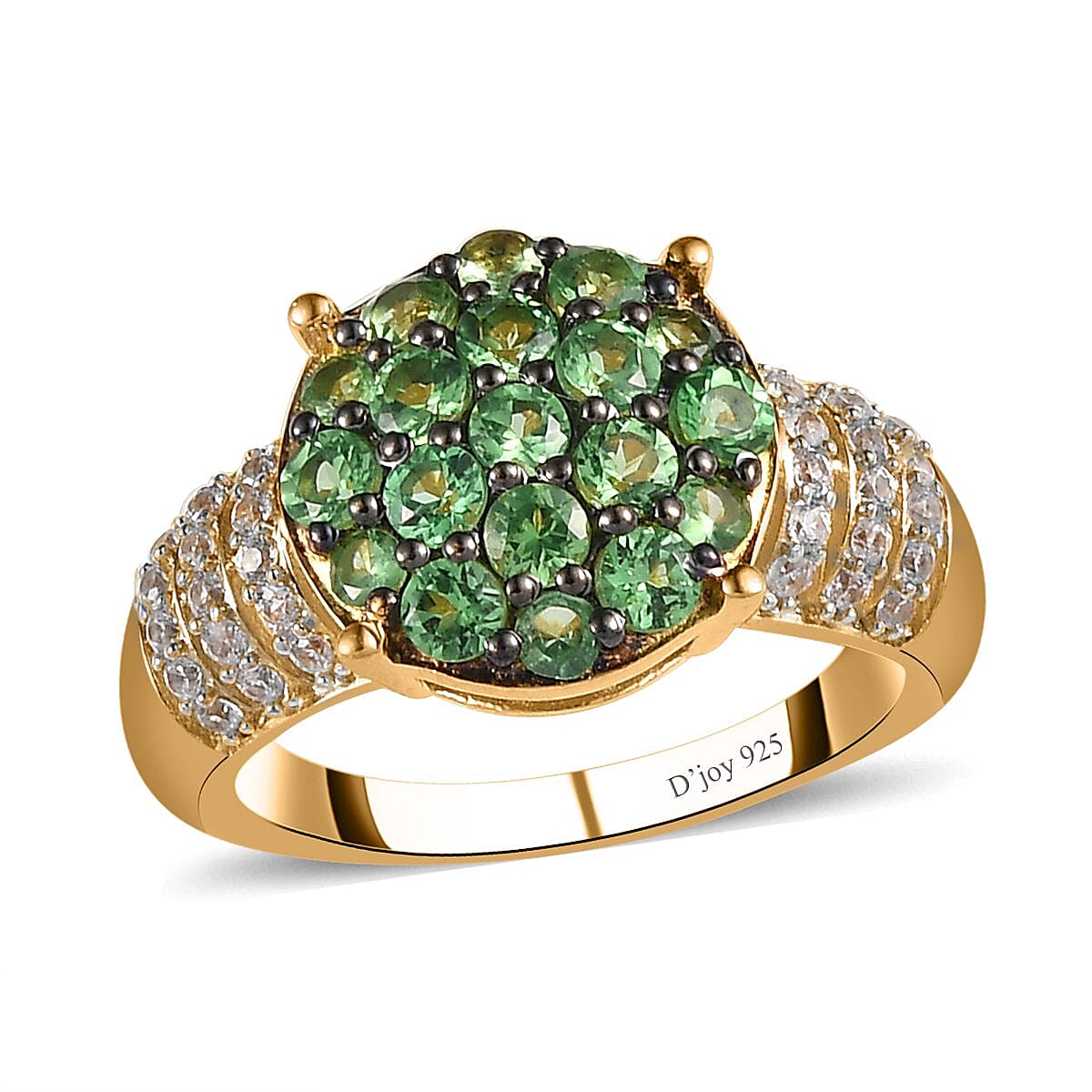 Premium Natural Tsavorite Garnet and Natural White Zircon Ring in Vermeil Yellow Gold Over Sterling Silver 1.65 ctw