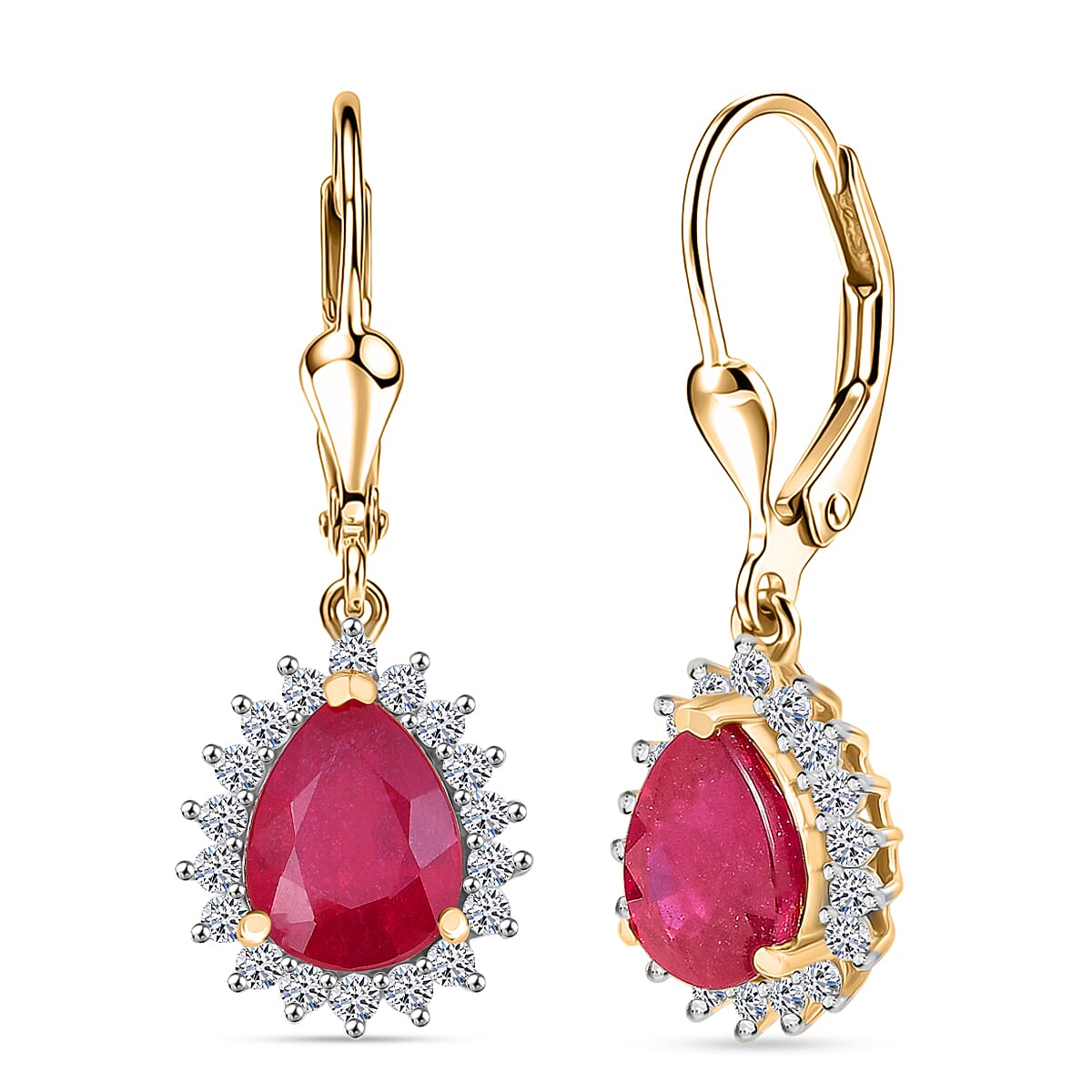 Premium Niassa Ruby (FF) and Luxuriant Lab Grown Diamond G-H SI 6.00 ctw Earrings in 18K Vermeil Yellow Gold Over Sterling Silver