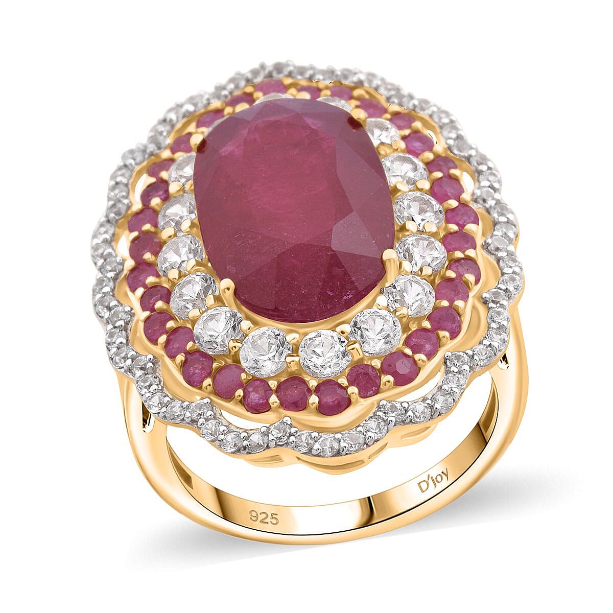 Premium Niassa Ruby (FF) and White Zircon 13.75 ctw Floral Halo Ring in 18K Vermeil Yellow Gold Over Sterling Silver (Size 6.0)