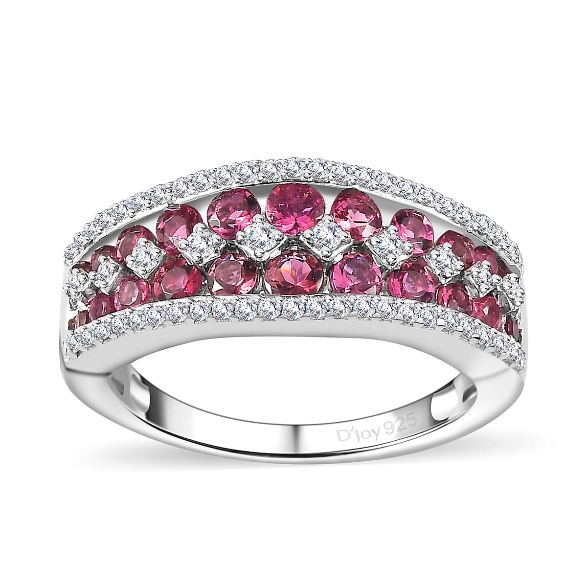 Premium Ofiki Rubellite and Moissanite Half Eternity Ring in Platinum Over Sterling Silver (Size 10.0) 1.35 ctw