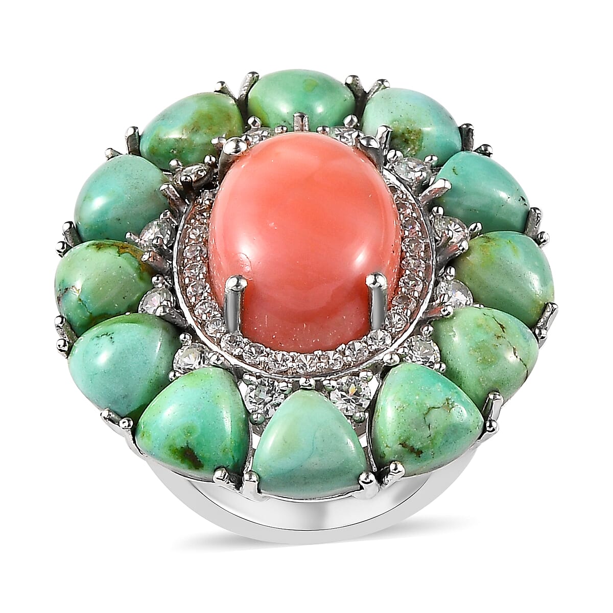 Premium Oregon Sunrise Peach Opal and Multi Gemstone Cocktail Ring in Platinum Over Sterling Silver (Size 8.0) 23.50 ctw
