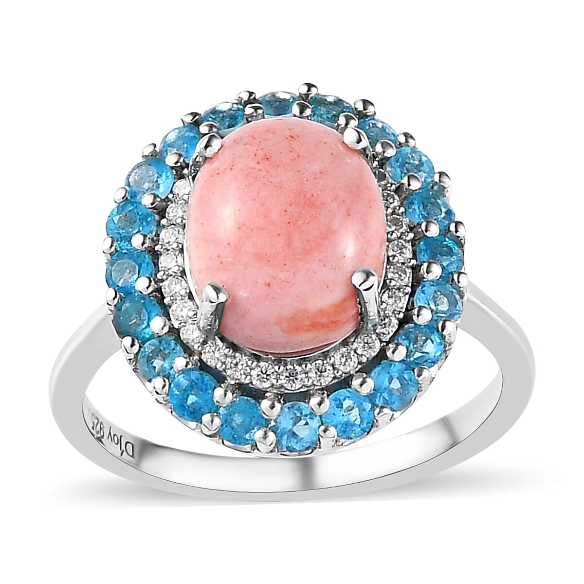 Premium Oregon Sunrise Peach Opal and Multi Gemstone Double Halo Ring in Platinum Over Sterling Silver (Size 7.0) 2.75 ctw