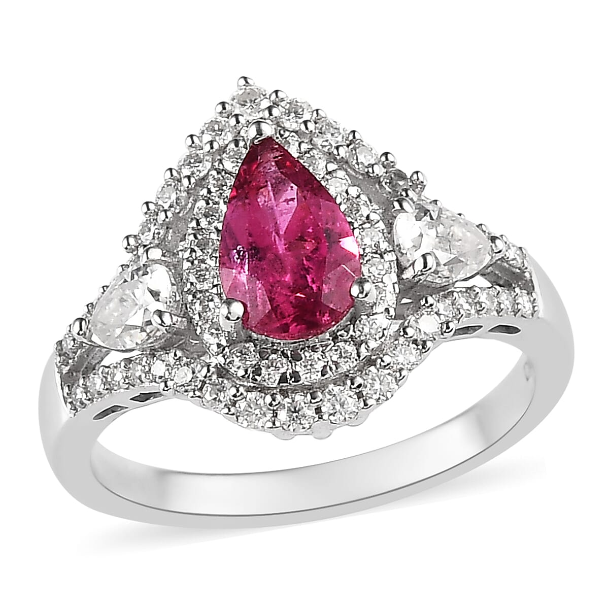 Premium Ouro Fino Rubellite and Moissanite Ring in Platinum Over Sterling Silver (Size 6.0) 1.40 ctw