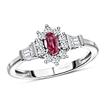 Premium Ouro Fino Rubellite and Natural White Zircon Sunburst Ring in Platinum Over Sterling Silver 0.75 ctw