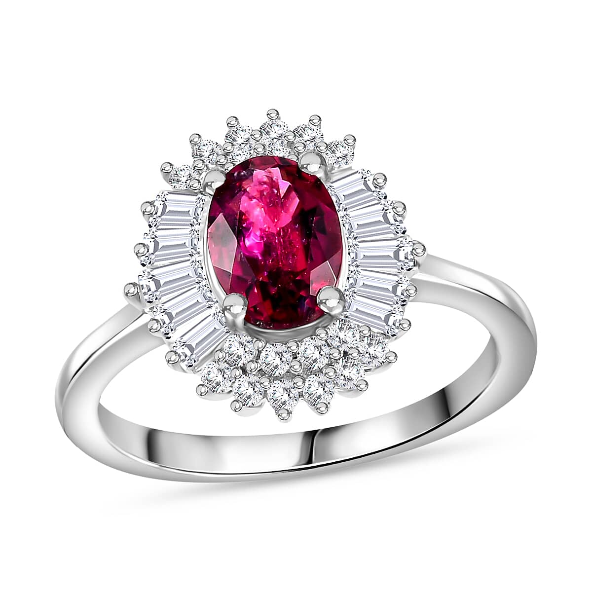 Premium Ouro Fino Rubellite and White Zircon 1.60 ctw Cosmic Bloom Ring in Rhodium Over Sterling Silver (Size 6.0)